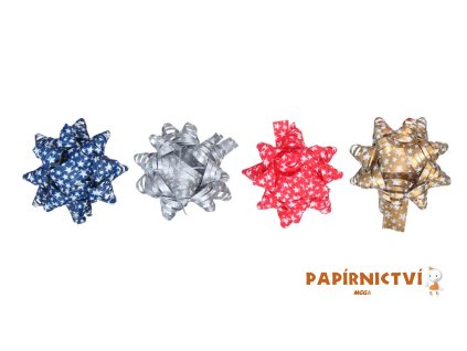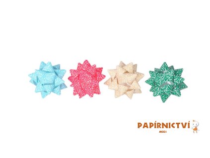 Rozetka s potiskem hvězdiček v mixu barev. Ideální dekorativní prvek, nejčastěji používaný k ozdobení dárkových balíčků a slavnostních balení. Dodává dárkům či dekoracím...